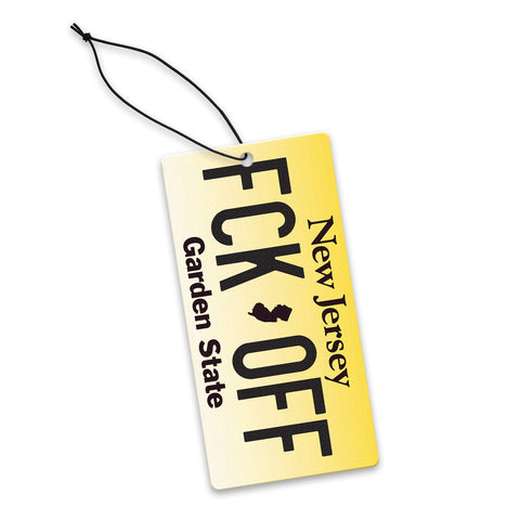The License Plate F--- OFF Air Freshener captures the true spirit of New Jersey driving. Designed to look exactly like our iconic yellow standard-issue plates, this air freshener lets you express your road rage without saying a word.
