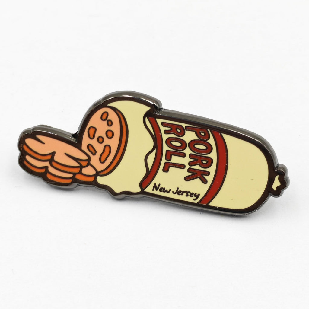 This metal enamel pin measures approximately 1 inch across and has a standard butterfly clasp backer.